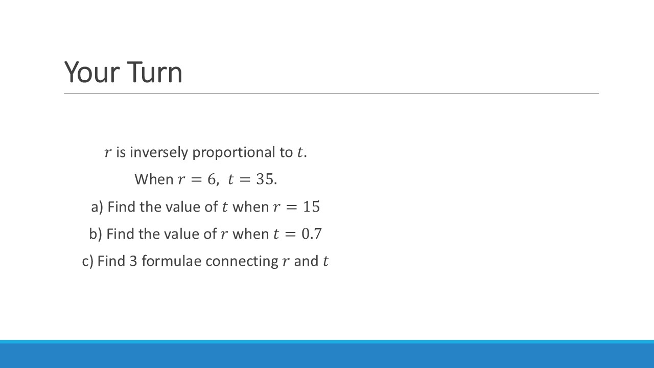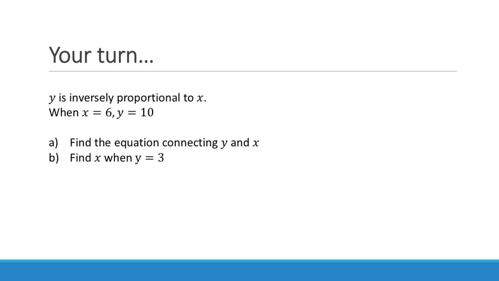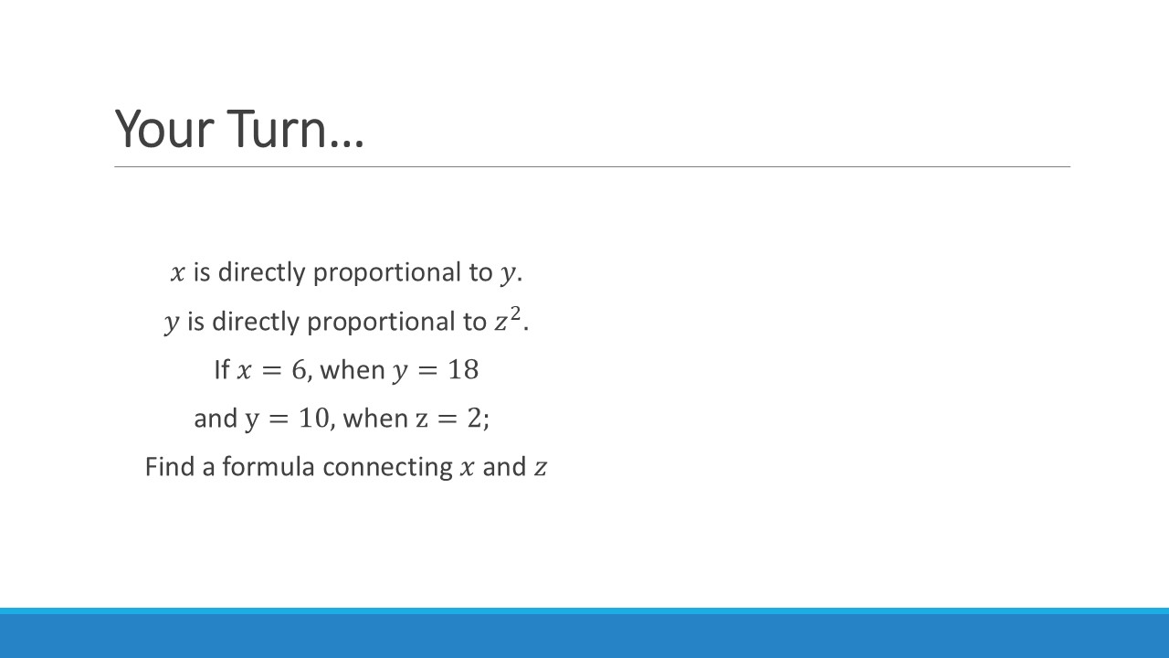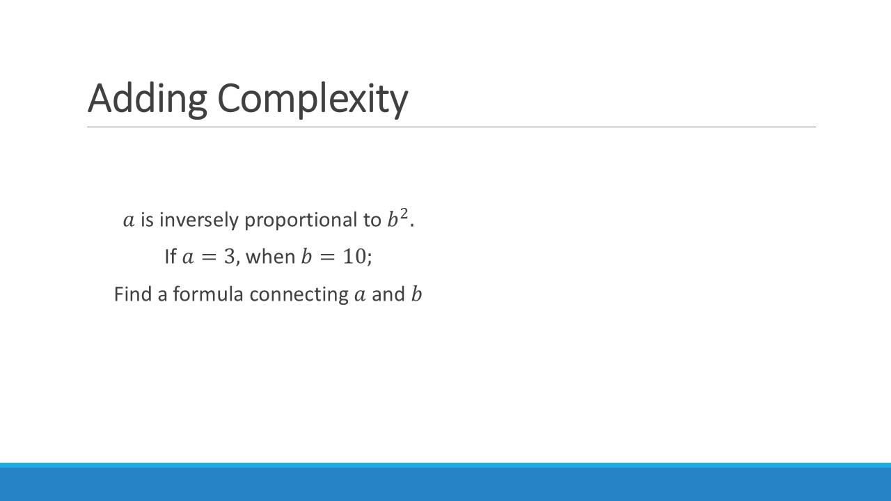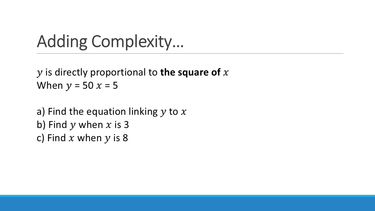 Again, we can increase the difficulty of this by introducing more complex relationships & multiple variables. You can even start mixing up direct and inverse relationships!