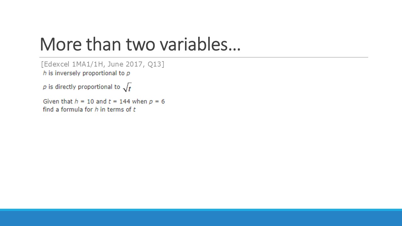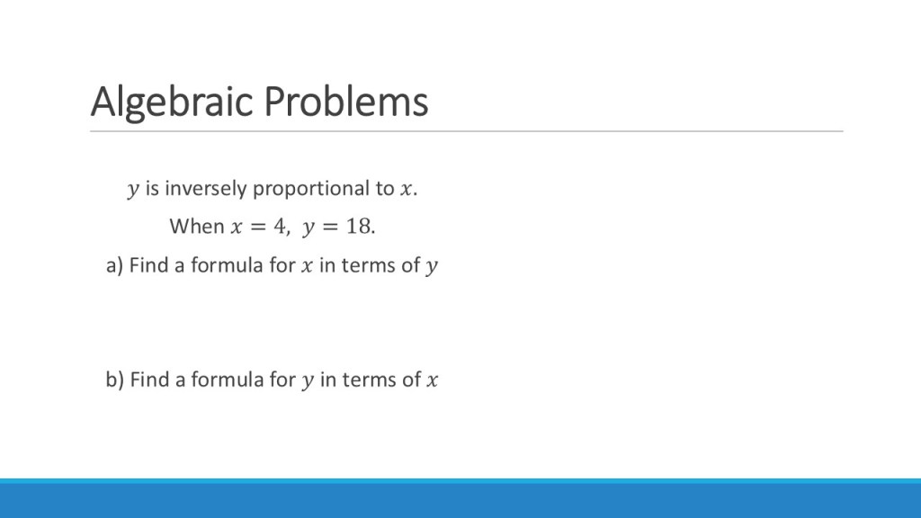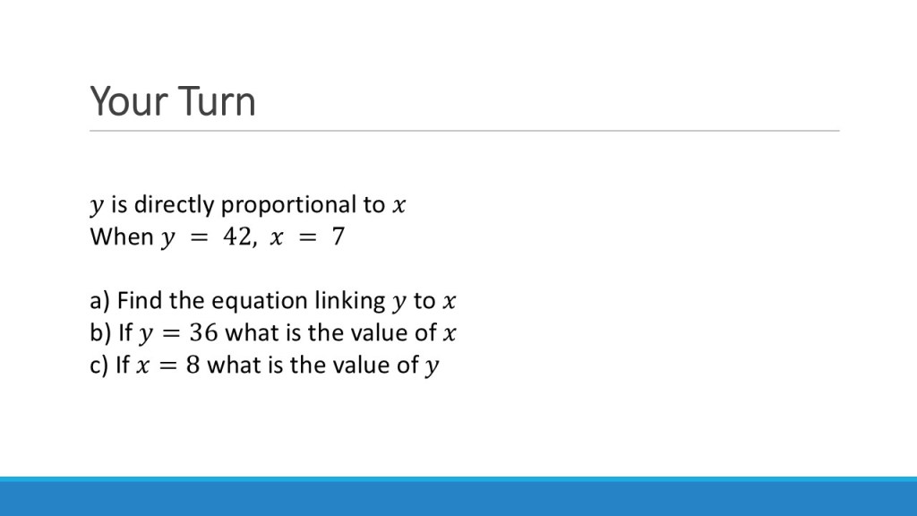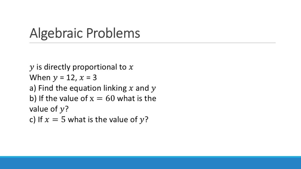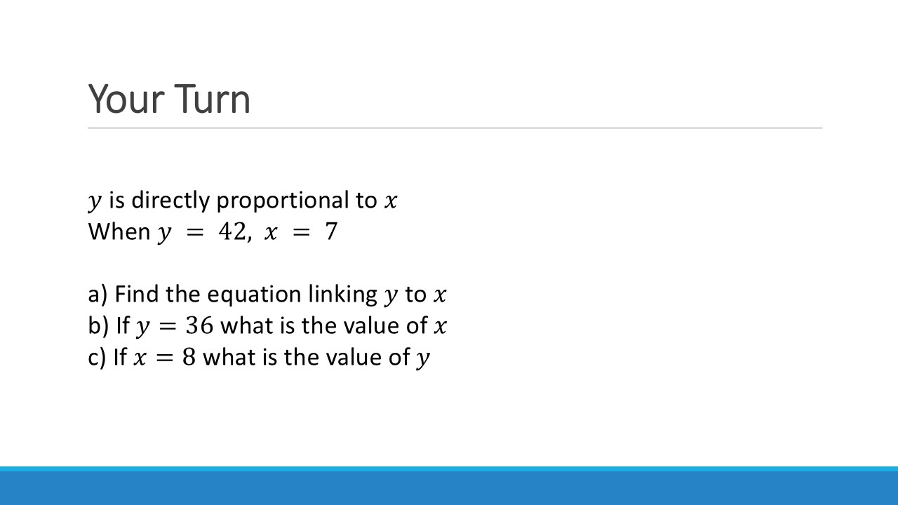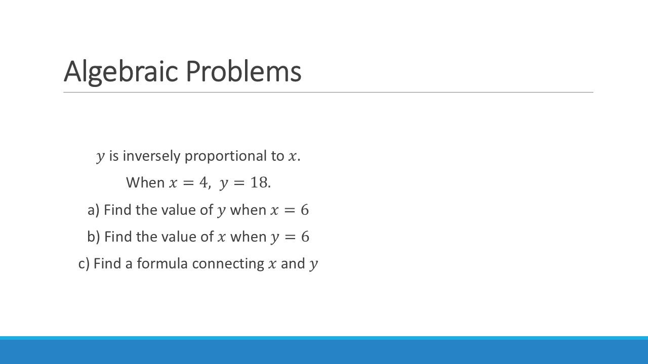 Again, we can increase the difficulty of this by introducing more complex relationships & multiple variables. You can even start mixing up direct and inverse relationships!