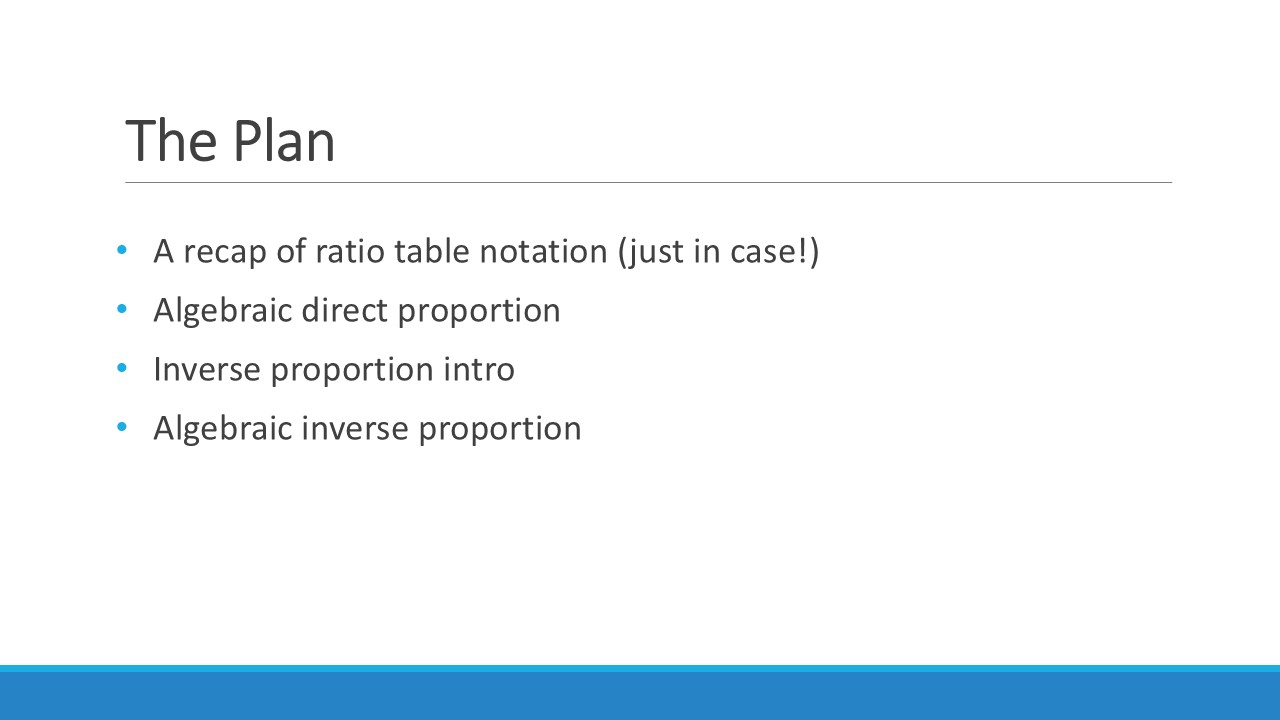 This session was a bit of a deep dive into the use of Ratio Tables to solve algebraic proportionality problems, including for inverse proportion. It was a follow on from my sessions at earlier MathsConfs, summaries of which you can find here: