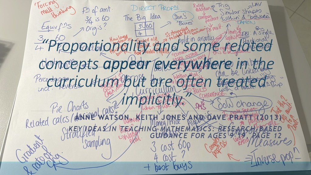 When I became a teacher, I started seeing these links so much more clearly, and I started wanting to tackle them head on. My biggest bug-bear was that I was taught to solve proportional reasoning problems, such as recipe problems and best buys, in a fundamentally different way to how I was taught to calculate unit conversions or compound measures, which again was different to how I worked with fractions, trigonometry, pie charts, and algebraic proportionality… Because they are all fundamentally all multiplicative reasoning problems, and they should not be treated as isolated ideas. And I will quote myself here, without feeling too narcissistic, because I think it’s an important point: