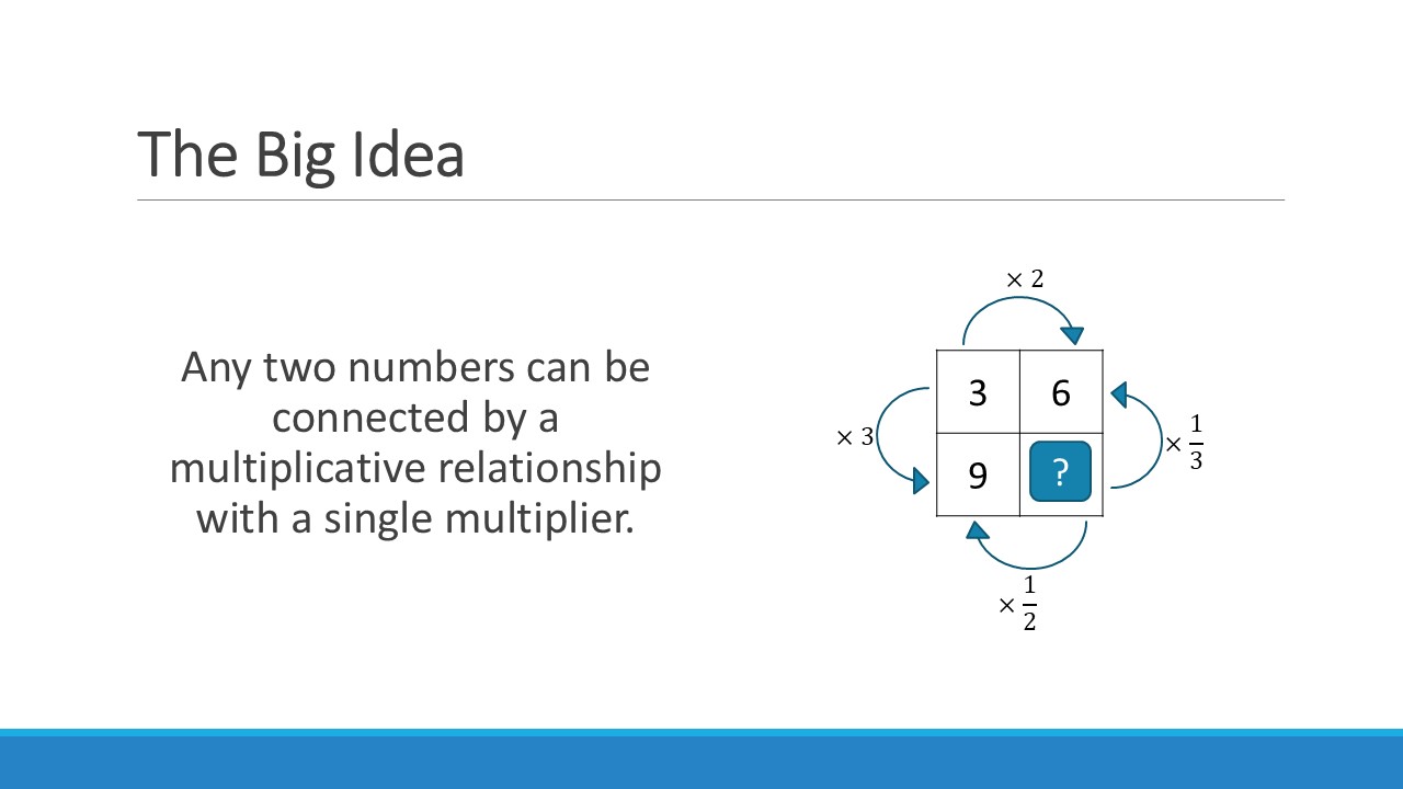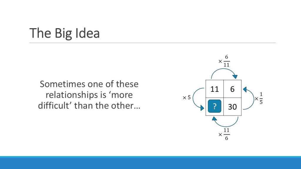 What I am arguing is that using the same representation consistently is key to building the conceptual understanding that multiplicative relationships are structurally no different in a generalised algebraic form.